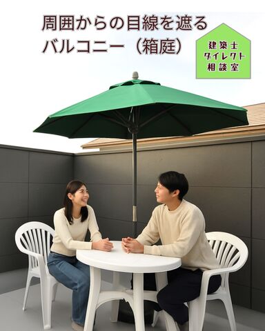 周囲から見えない二階の坪庭二階のバルコニーですが、周囲から見えないようにしました。